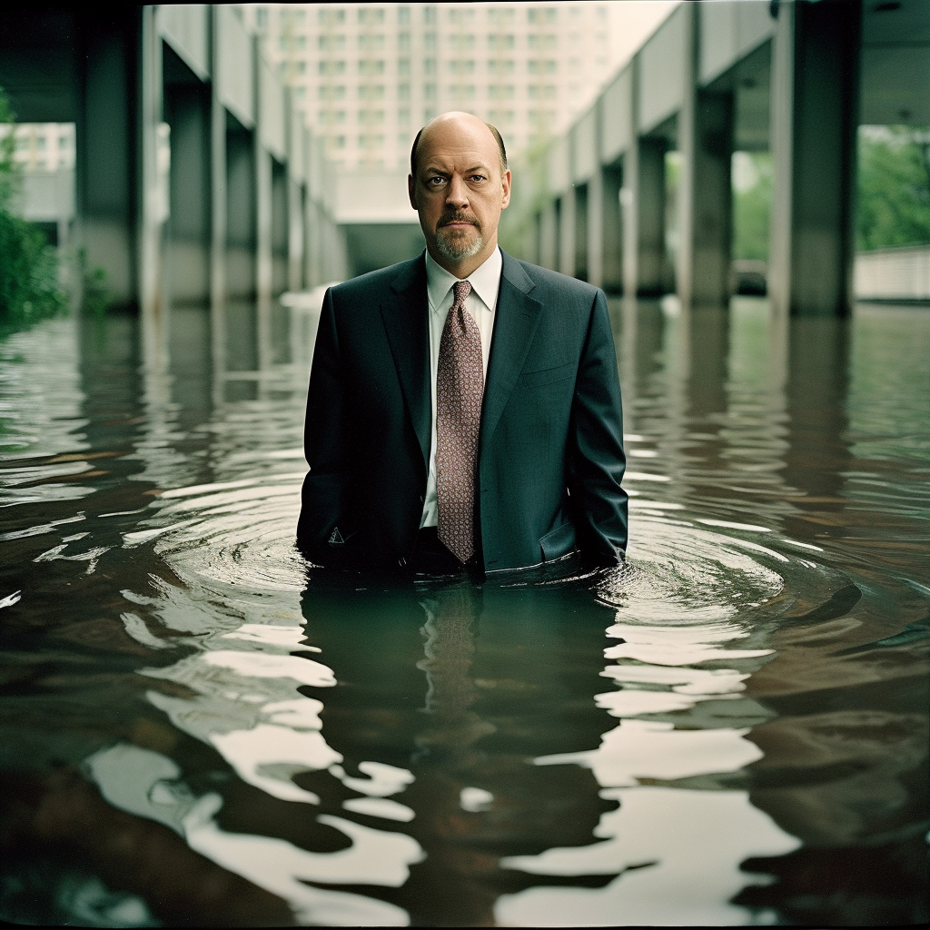 As night fell and the waters began to recede, Jim Cramer emerged – dripping wet, but victorious – from the soggy chaos that was once Wall Street. He stood atop a pile of waterlogged newspapers and proclaimed, “I told you it wasn’t raining!“