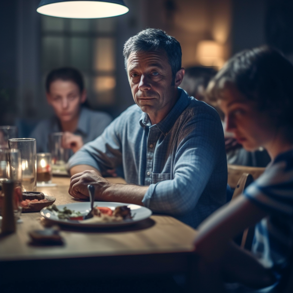 As the family gathers around the table, all eyes are on Dad and his crisp, button-up shirt. He seems unaware of the attention, though, and proceeds to tuck into his meal with gusto. But as the evening wears on, it becomes clear that Dad is not the only one with secrets.