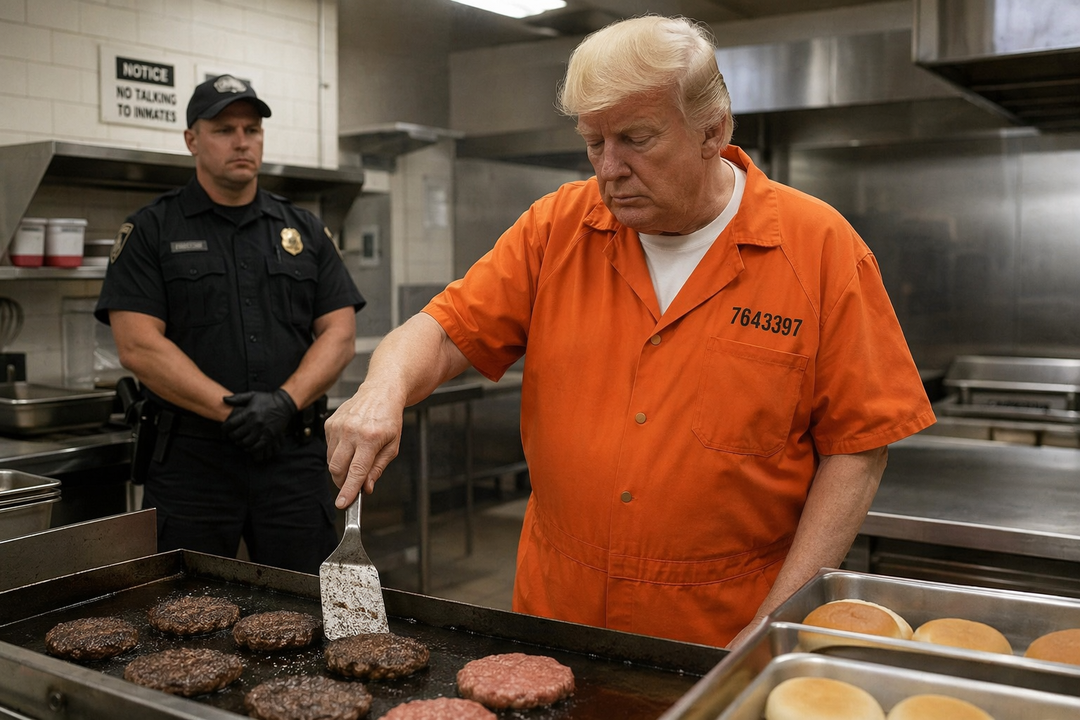 ATLANTA — In what prison officials are calling a new era toward flavor-forward rehabilitation, president Donald Trump has reportedly been promoted to Head Burger Chef at a federal correctional facility, ushering in what inmates describe as a golden age of incarceration cuisine.